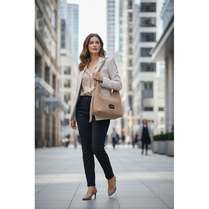 The Shoulder & Crossbody Bag by De Raggi combines simplicity, comfort and modern aesthetics. Its minimal design and soft lines make it a particularly practical piece that can be easily worn throughout the day, offering elegance and functionality to any look. Its exterior is made of recycled suede leather, a material with a particularly soft texture and high durability, which offers a luxurious feel and at the same time respects the modern approach to sustainability. Its interior features a high-quality leather lining, which is breathable and absorbent, contributing to the proper protection of personal belongings and comfortable daily use. The bag is designed to offer practical organization: Two internal pockets, of which one with a zipper for secure storage one open for immediate access to small items The bag's strap is adjustable, allowing it to be worn comfortably on the shoulder or crossbody, depending on the style and need of everyday life. Designed & Handcrafted in Greece Dimensions: Height: 44 cm Length: 30 cm Width: 17 cm