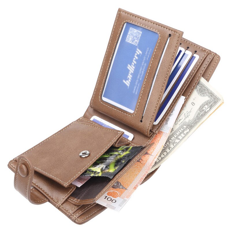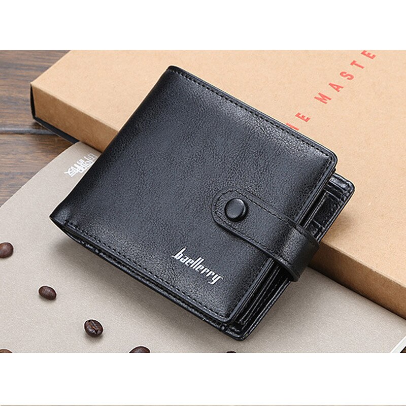 The Baellerry mini wallet is a compact and stylish accessory designed for men. It is made of high-quality PU leather, ensuring durability and longevity. The wallet is designed with a hasp closure, keeping your belongings safe and secure.  The interior of the wallet is intelligently crafted, with multiple compartments that allow for organized storage of cards, coins, and notes. The wallet has a spacious interior compartment that can hold notes and receipts, while the card holder can accommodate multiple cards.  In addition, the wallet has an interior slot pocket that can be used to store additional items such as IDs and business cards. It also features a coin pocket that is perfect for keeping your loose change.  The wallet has a short length, measuring 12cm in length and 9.5cm in height, making it a perfect fit for a front or back pocket. It has a slim design, with a width of only 2cm, which allows for a comfortable fit in any pocket.  The wallet is decorated with a solid pattern and has a vintage style that is sure to complement any outfit. It is lightweight, weighing only 102g, which makes it easy to carry around all day. The wallet is lined with polyester, adding to its overall durability and quality